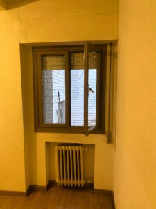 La vivienda se ubica en un bloque junto a la Plaza de las Heras; el portal es grande y adaptado, con rampas y dos ascensores, uno para cada escalera. Para llegar al piso, tan solo hay que subir una planta.